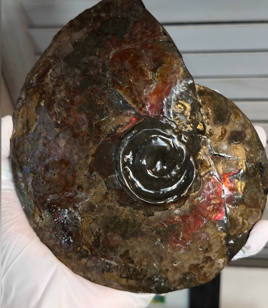 https://youtube.com/shorts/MK1VLMJ5Vl0?feature=shared Bearpow Formation Alberta, Canada 100% Natural Earthy Colors With A Great Iridescence’ Placenticeras Intercalare Fossil . This intercalare fossil has some reds and greens. There is a...